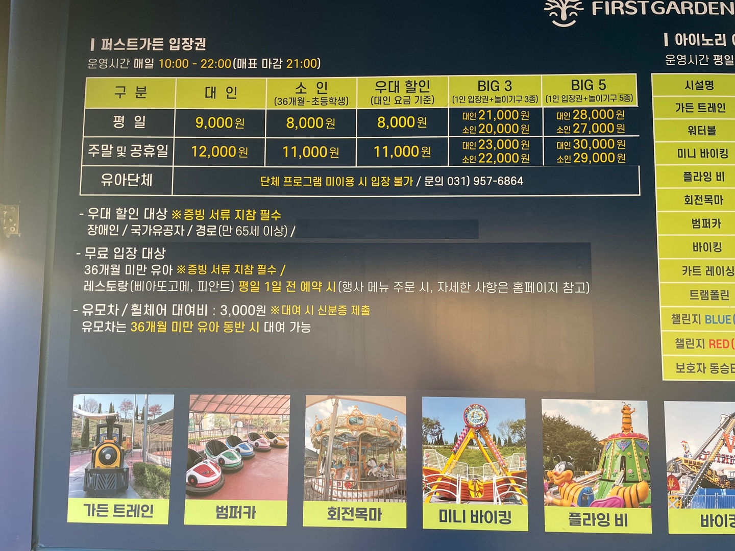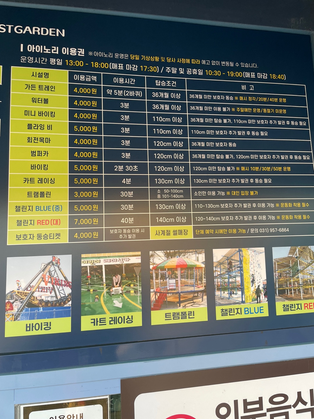 중요했던 게, 탑승 조건에 "키"가 있어서 아이 혼자 탑승 못하는 놀이기구가 있기에...